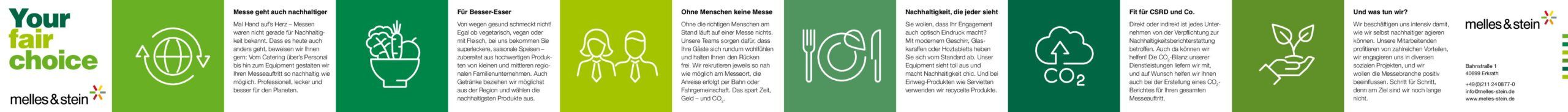 Ein handlicher Pocketflyer fasst kurz und knackig zusammen, was Melles & Stein im Bereich Nachhaltigkeit tut – ideal für die Kundenakquise auf Messen.