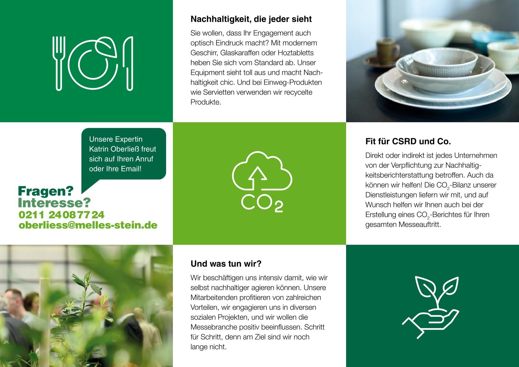 Ein handlicher Pocketflyer fasst kurz und knackig zusammen, was Melles & Stein im Bereich Nachhaltigkeit tut – ideal für die Kundenakquise auf Messen.