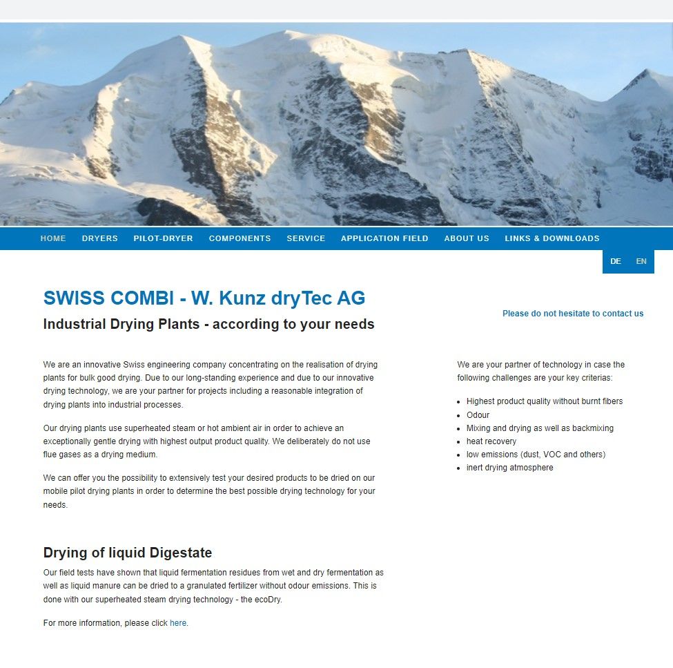 Die Website des Aargauer KMU SWISS COMBI war in die Jahre gekommen und spiegelte die Innovationskraft das international erfolgreichen Familienunternehmens, das auf die Entwicklung industrieller Trocknungsanlagen spezialisiert ist, nicht mehr ausreichend wider. Deshalb erhielt Kontx im Sommer 2022 den Auftrag, eine neue Website für das Unternehmen zu erstellen.
